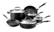 This cookware set is an exceptional value including all of the pans needed to equip your kitchen with the most used cooking pieces. As the set contains only basic pieces you'll really use each and every pan. It includes saucepans for whisking a homemade sauce or cooking your morning oatmeal a big stockpot for soups stews or boiling pasta and skillets (probably the most used pan in any kitchen) that will help you turn out perfect crepes or a simple grilled cheese sandwich. The set also includes a sauté pan a wide straight-sided pan that can perform many of the functions of a skillet but features deep sides for extra capacity perfect for one dish meals. Start your dish in this pan by sautéing onions and browning meat then add your liquid and other ingredients into the same pan to finish on the stovetop or in the oven.